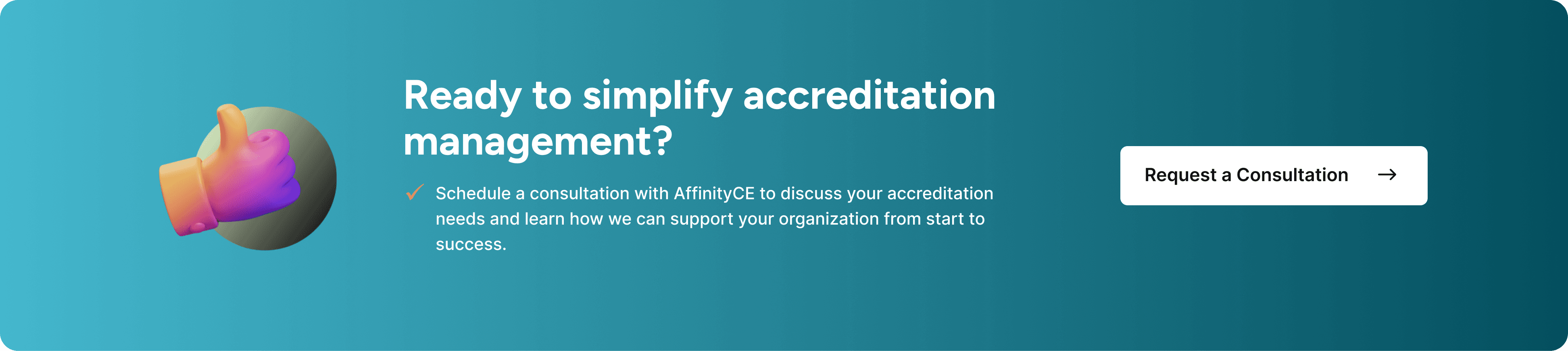 Accreditation is a critical requirement for healthcare education providers, yet managing it can be complex, time-consuming, and high-risk if not handled correctly. AffinityCE provides end-to-end accreditation management services designed to simplify compliance with accrediting bodies while maintaining the highest standards of quality.